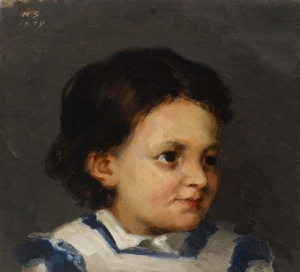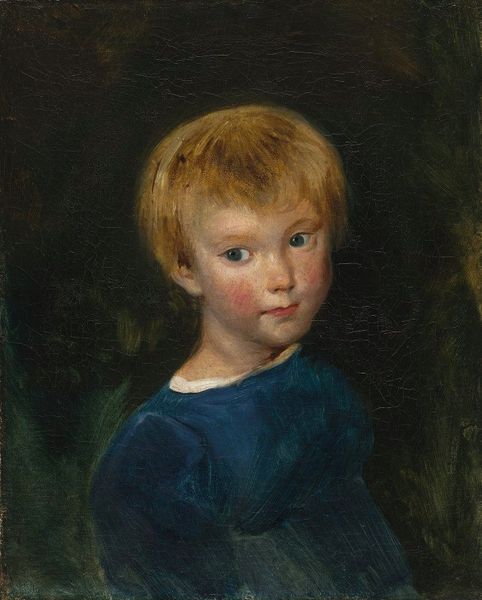 Curator: Welcome. Before us is "The Son of M. Edouard Delalain", an oil painting created around 1850 by Camille Corot. It's a compelling portrait. Editor: It's arresting, isn't it? The child’s gaze is so direct, almost unnerving. And the muted palette gives it such a somber feeling. It makes you wonder what's going on behind those eyes. Curator: Corot's career shows an interesting negotiation of genre. Though mostly celebrated for his landscapes, portraits like these provide insight into the conventions of the time, with Corot taking inspiration from Romanticism and Realism to appeal to broader audiences. Portraits were essential commissions at the time. Editor: Absolutely. But looking at this today, it begs the question of representation, particularly concerning children. The sitter, poised as a smaller figure of authority in a middle-class family, hints at expectations placed on boys even then. How much agency did this child truly have in posing for this portrait? Curator: A relevant point, and one to consider when viewing such works. It is likely that Delalain’s status afforded him the opportunity to secure the service of such an artist as Corot to commemorate his son, reinforcing his own position in society. These works also reinforced traditional family and class values. Editor: It's those silent social structures and expectations, silently imposing themselves through art. And looking at how the artist uses light and shadow to define the boy's face, creating a sense of weight beyond his years is almost eerie. One sees this portrait through multiple lenses—artistic skill but also social imposition. Curator: Corot has masterfully used tone to emphasize a mood of melancholy. However, this artistic ability served a stratified social environment. A powerful representation which reflects those values back at us as we grapple with our own. Editor: Art like this pushes us to engage in critical analysis. To me, "The Son of M. Edouard Delalain," provides the occasion to reflect on these silent, formative impositions in art and beyond, encouraging us to challenge and reimagine what’s presented as normality. Curator: A nuanced analysis I concur with. I walk away also intrigued by what this reveals about the artist's ambitions.