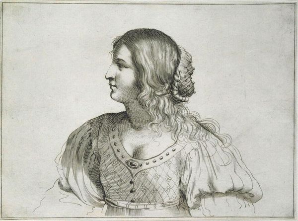 Christian Wilhelm Allers created this portrait of Amanda Lindner using pencil, placing her within the context of late 19th-century Germany, a period marked by industrial expansion and cultural shifts. This image presents Lindner in a juxtaposition of contrasting symbols. Crowned with flowers, suggestive of innocence and beauty, she's also adorned with a suit of armor, an emblem of strength and defense. Allers seems to be engaging with the era’s debates around femininity, perhaps challenging conventional portrayals of women as passive. Does the armor protect her delicate beauty, or does it arm her for a more active role? It invites us to contemplate the multifaceted nature of identity, the tension between vulnerability and strength, and the complex negotiations of gender in a rapidly changing society. It's a tender yet powerful representation of a woman navigating her world.