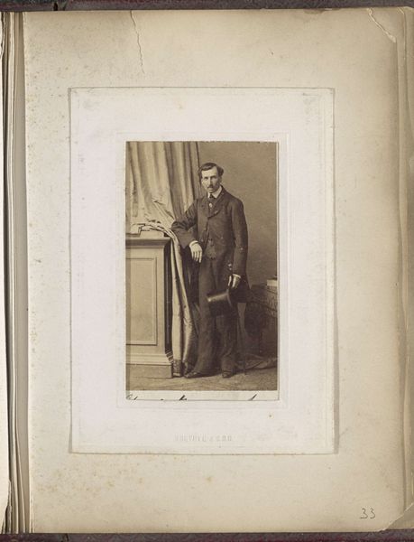 Editor: So, this gelatin-silver print, "Portret van William Home, jurylid op de wereldtentoonstelling in St. Louis (Louisiana Purchase Exposition), 1904," from 1904 by Jan Schüller, has this really formal and reserved feeling. What do you see in this piece? Curator: I see a complex interplay of power and representation. Think about the World's Fair itself – a celebration of industrial progress, but also a reinforcement of colonial power structures and racial hierarchies. Home, as a juror, was a participant in that system. How does the artist subtly acknowledge, or perhaps even critique, that context? Editor: It's interesting that you bring that up, I wouldn't have considered the Louisiana Purchase Exposition through a colonial lens. His pose does strike me as very self-assured. Curator: Exactly. And how does that relate to his identity as a white man in 1904? How much of that self-assuredness comes from inherent privilege? The seemingly neutral act of portraiture becomes a loaded statement. Editor: So, you are saying that beyond this being a straightforward portrait, it’s about examining the power dynamics inherent in representation and the subject's place within a larger sociopolitical structure? Curator: Precisely. Photography, particularly portraiture, wasn't merely documentation. It was also a tool used to construct and perpetuate particular ideologies. I wonder, does Schüller’s artistic choice to stage the subject outdoors against a building add another layer to your interpretation? Editor: That is really thought provoking, looking at how something that appears straightforward can be interpreted through a lens of social context and power. It definitely offers a more profound reading of the piece! Curator: Indeed. Seeing art as entangled in power structures reveals nuances previously unseen and unheard, promoting critical engagement and hopefully, social progress.