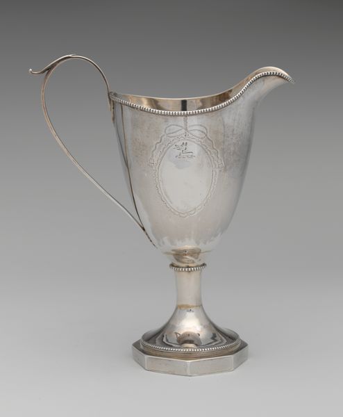 This Creamer was crafted in the late 18th century by John Letelier Sr. from gleaming silver. Note the initials emblazoned on its side, a heraldic monogram binding the identities of its owners, a symbolic gesture claiming ownership and lineage. Consider how such monograms—these knotted signatures—echo throughout history, from the royal cyphers of antiquity to the intertwined initials on lovers' keepsakes. The impulse to mark, to claim, to weave one's identity into the fabric of an object, speaks to a deep human desire for permanence. The delicate beaded rim, too, carries echoes of ancient decorative motifs, resurfacing across centuries. It is a testament to how forms persist in our collective memory. This creamer, then, is more than a vessel; it’s a repository of symbols, each whispering tales of heritage.