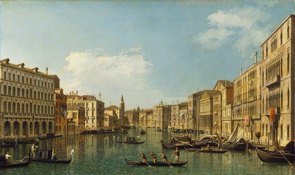 Canaletto made this view of the Rialto Bridge from the South with oil on canvas. Look closely, and you'll see that he relied on the skilled application of paint, which was of course a costly material. The artist, whose real name was Giovanni Antonio Canal, had a workshop of assistants. They churned out views of Venice for wealthy tourists, who were keen to take home memories of their travels. Canaletto would have begun with a precise drawing, perhaps aided by a camera obscura, and then layered on paint with incredible precision. This wasn’t just documentation, though. The light, the mood, the story of Venice as a bustling port city – all that is conveyed through Canaletto’s attention to material and process. Consider the countless hours of labor involved in the creation of this painting. The mining of pigments, the weaving and preparation of canvas, the skilled brushwork, and the economic system that supported it all. These are all crucial elements in the making of this artwork. Recognizing the deep relationship between art, labor, and commerce allows for a more complete understanding of Canaletto's artistry.