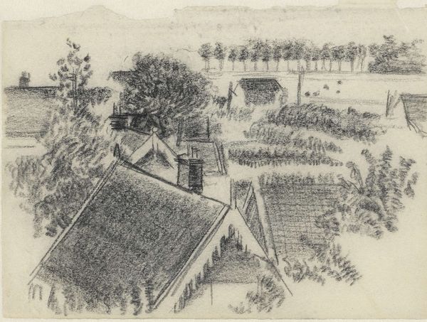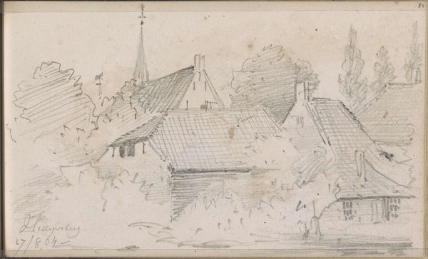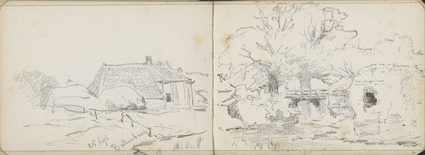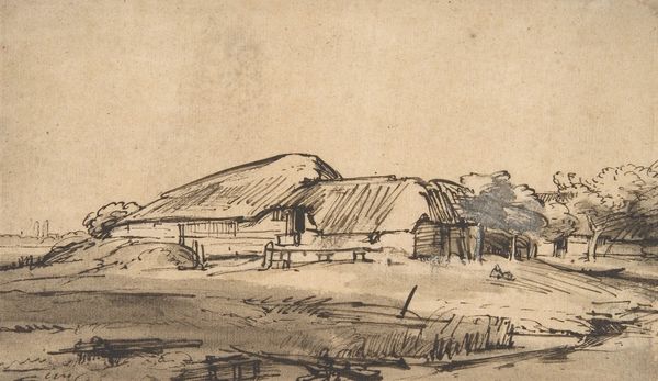 Editor: Here we have "Landscape with a Thatched Farmhouse in Rijsbergen," a pen and ink drawing from 1841 by Johannes Tavenraat. It's currently held at the Rijksmuseum. It’s deceptively simple, almost child-like, but I'm also struck by how effectively the artist has captured light with such minimal strokes. What do you see in this piece? Curator: The first thing I observe is the linear quality. Note the economy of line used to define the forms, particularly the thatched roof and the bare tree. It's a masterful demonstration of using line weight and density to suggest form and depth. Where do you see this most prominently? Editor: I notice it in the variations of thickness that gives volume to the tree and shows depth in the thatched roof. But it also seems inconsistent in the textures, so I can't help but focus on that contrast. Is that a purposeful aesthetic choice? Curator: Precisely. Look at the relationship between the carefully rendered foreground and the more ambiguous background. The contrast directs the viewer’s eye, creating a dynamic interplay between precision and suggestion. It raises questions about the artist’s intentions – is this realism, or is there an attempt to evoke emotion? Editor: I suppose the choice to emphasize some parts over others definitely shapes how the whole composition affects me. So, rather than an exact replication, Tavenraat presents a perspective, a conscious manipulation of form. Curator: Indeed. This drawing showcases how line and form can transcend mere representation to become vehicles for artistic expression. What do you make of the composition's arrangement as a whole? Does that have any bearing on the form of the art? Editor: I see what you mean! Paying attention to how these formal elements function brings so much more depth to even seemingly simple pieces. Thanks for pointing those things out! Curator: It is crucial to attune our perceptions to appreciate any composition fully. Examining visual arrangements helps unveil the nuances in an artist's expression.