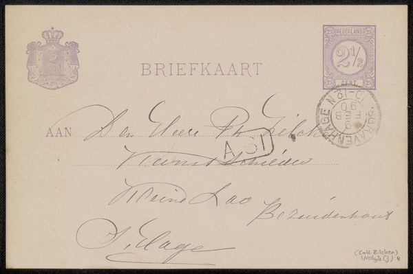 This "Briefkaart aan Philip Zilcken" was produced in the Netherlands in 1886. It’s a humble postcard, but it speaks volumes about the social world of art at the time. The card is addressed to Philip Zilcken, likely an influential figure in the art world, and signed by Jan Zürcher. These kinds of exchanges are central to understanding art history. Artistic reputations are built not just by singular genius, but on networks of support. In this case, we see a direct connection between artists and patrons. The postal markings give us a date and location, anchoring the artwork within a specific time and place in Dutch society. The coat of arms would tell us about the administrative structures of the time. By examining correspondence like this, along with exhibition records, artists' biographies, and period publications, we can begin to understand the complex web of relationships that shaped artistic production.