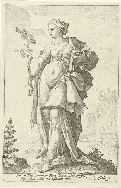 This is an engraving of the allegorical figure Spes, or Hope, made by an anonymous artist. Spes is set against a landscape and cave, a large anchor diagonally crosses her chest and she holds a scroll in her hand. Images such as Spes, were part of a visual vocabulary used in the 16th and 17th centuries to offer moral and spiritual guidance. Allegories like Spes became potent symbols, used by those in positions of power to reinforce social norms. Yet, for the individual, they provided a means to contemplate life’s complexities. Spes invites us to consider where we place our hope, whether in tangible objects or in the promise of the divine. The figure of Spes also draws attention to the gendered nature of hope. Often depicted as a female figure, hope becomes intertwined with expectations of women as caregivers. The text at the bottom translates as: "I recreate those who are grieving, so that life may not be bitter, / and bravely, I offer sweet consolations in adversity."