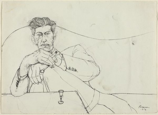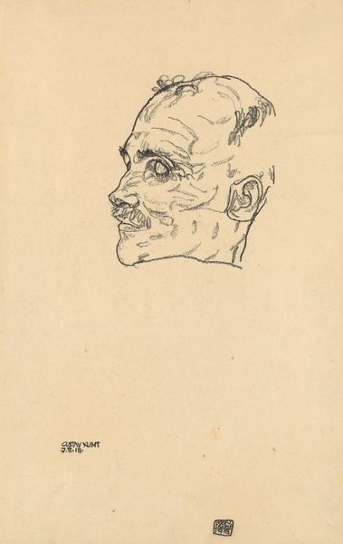 Editor: This is Egon Schiele's 1916 pencil drawing, "Portrait of the Writer Robert Müller." It strikes me with a severe and penetrating gaze, and an intensity that seems to be heightened by the starkness of the medium. What stands out to you, structurally? Curator: The efficiency of line is remarkable. Notice how Schiele delineates form with an economy that is almost diagrammatic, yet avoids collapsing into mere outline. The pressure of the pencil modulates, thickening at the brow and around the eyes to define Müller’s scowl. What impact do you feel that such intense hatching creates, Editor? Editor: The hatching really emphasizes the planes of the face and creates a sense of depth and underlying bone structure, while creating an almost palpable tension. The starkness of the contrast only underscores the figure's powerful stare. It feels…raw. Curator: Precisely. Schiele masterfully manipulates light and shadow not for mimetic accuracy, but for expressive power. The very composition emphasizes this, isolating the sitter, thereby forcing the viewer to contend solely with the formal relationships on display, as well as the intensity of the subject’s expression. How might you define the interplay between the represented subject and the purely abstract, visual properties? Editor: It's a potent relationship; the tension between the representational and the abstract contributes to the overwhelming feeling of anxiety and immediacy in the piece. I hadn't really considered just how deliberate each line seems. Curator: Indeed, and such is the formalist’s insight: understanding the intrinsic qualities is paramount. Editor: Thank you! I'll never see a simple line drawing the same way again.