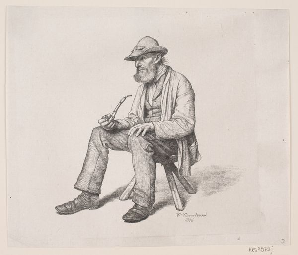 Here's an undated photograph titled "Scheveningsche Visscher" made by Trenkler & Co. that presents an interesting take on portraiture. The restrained palette, mostly in shades of purple, lends a softness to the image, but it’s the fisherman’s pose that really grabs you. He stands with his arms crossed, a gesture of self-containment and strength. You can see the texture of his weathered skin, the lines etched by time and toil. The photographer has captured a sense of resilience in this man, a kind of quiet dignity. It's like looking at a drawing, each line a deliberate choice. This image reminds me a bit of some of those old master portraits, where the subject's character is laid bare through careful observation. It’s a reminder that art can be found in the everyday, in the faces and stories of ordinary people. Art invites us to slow down, to look closely, and to find beauty in unexpected places.