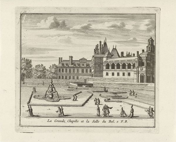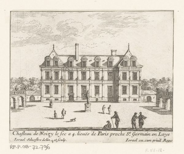 This print, made by Israel Silvestre in the 17th century, presents a view of the Château de Tanlay and its surrounding water features. Silvestre was known for his detailed etchings of landscapes and architecture, a process involving coating a metal plate with wax, drawing through the wax to expose the metal, and then immersing the plate in acid, which bites into the exposed lines. The resulting incised lines hold ink, allowing the image to be printed. Look closely, and you'll notice how the varying thickness and density of lines create depth, shadow, and texture, giving form to the stone, water, and foliage. Beyond the aesthetics, the print also speaks to the burgeoning print market of the time, where images of grand estates became commodities, circulated amongst the aristocratic class. Silvestre's skill in etching not only captured the likeness of the château, but also contributed to its circulation as a symbol of power and prestige. It serves as a reminder that what we consider 'art' is often deeply embedded in social and economic structures.