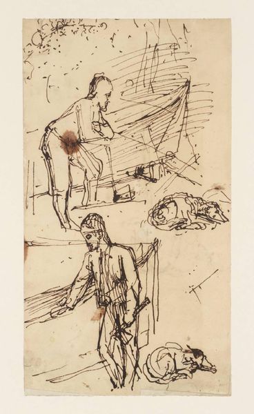 Oluf Hartmann created these Studies for "Macbeth and the Witches" and for "Two Women Fighting Over a Man" in Denmark, probably in the early 20th century, using drawing. Hartmann's exploration of Shakespeare's Macbeth and scenes of conflict can be seen as a reflection of the era's fascination with psychological and dramatic themes. Denmark, at the time, was experiencing significant social and cultural shifts, grappling with modernity while maintaining its artistic traditions. The Royal Danish Academy of Fine Arts, for example, was central to shaping artistic styles, yet artists were seeking new forms of expression. Hartmann’s sketches might critique academic art by embracing raw emotionality. Understanding the context of early 20th-century Danish art allows us to better appreciate how artists engaged with their cultural moment, questioning the very institutions that supported them. You can research Danish art journals from the period and institutional records from the Royal Danish Academy.