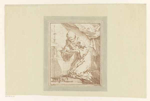 Editor: Here we have François Philippe Charpentier’s “Suite de sept petits croquis,” dating back to 1766. It’s a print – an etching in ink on paper – housed here at the Minneapolis Institute of Art. My first thought? There is a lot of negative space, drawing the eyes directly to the figure with their arm up. It gives a feeling of hopelessness or surrender, yet someone near is paying them no mind. What is your view of it? Curator: You know, it strikes me as almost a scene from a fever dream. Look at the exaggerated gestures and the sketchy quality of the lines. Do you get the sense that Charpentier is less interested in perfect representation and more invested in capturing a fleeting emotion? Think about the Baroque period. Everything was supposed to have such theatrical grandeur! And Charpentier throws it to the wind, with its raw energy and almost uncomfortable honesty. What do you think he's trying to tell us, even after all these centuries? Editor: I definitely agree. It feels a bit unfinished and quite raw, maybe reflecting some inner turmoil. What’s interesting is the storytelling and sense of a moment being frozen in time. Almost cinematic. Curator: Cinematic, that’s a great word. Like a single frame from a longer, lost narrative. Think of the power he hands over to the viewer; we're tasked with filling in the gaps, aren't we? Creating the backstory ourselves. Does it change how you look at it, realizing that the story lives in *you* as much as in the image? Editor: It does! That really gives it a modern feel, even though it's so old. I appreciate you showing me how Charpentier captures emotion. It adds a new dimension for me. Curator: And I think your insight about the negative space leading the eye is spot on; a minimalist choice, adding tension! Art is always this dance of creator, object, and interpreter. Isn't that lovely?