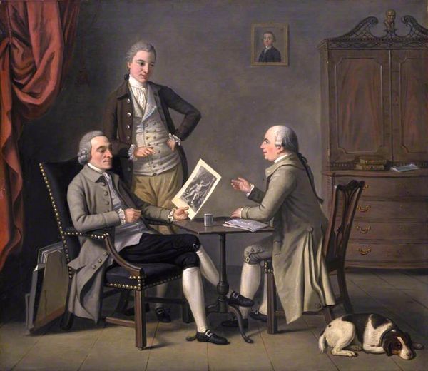 George Romney painted "Adam Walker and his family," capturing the spirit of scientific curiosity. Notice the telescope held aloft, a phallic symbol of knowledge and exploration, pointing towards an unknown future. This upward gesture echoes through art history, seen in classical depictions of gods reaching for the heavens, a timeless aspiration. Yet, here, it merges with the Enlightenment's fervor for empirical observation, a new way to understand the cosmos. The family bends over maps, a symbol of earthly dominion, their posture evoking a sense of shared purpose. The figures huddle together, connected by the desire for expansion and discovery, a subtle hint to a deeper psychological connection. As the telescope gazes at the stars and the family plots their journey, we are reminded of our own yearning to chart the unknown. This yearning resurfaces in art and culture across generations. A cyclical pattern of seeking meaning through the scientific method, each age reinterpreting it in its way, a never-ending story of human aspiration.