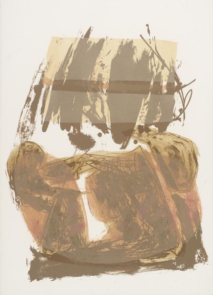 Curator: Feliks Topolski's work, titled "Autobiography", presents a fascinating visual puzzle. It is part of the Tate Collections. Editor: My first impression is a feeling of fractured identity, almost overwhelming with its layering of faces and forms. What are your thoughts on its materiality? Curator: The apparent layering comes from Topolski's distinct drawing and printing process. His practice was rooted in social observation. This piece seems like a personal archive made public. Editor: Indeed, the spiral composition draws the eye inward, perhaps symbolizing a journey into the self. It also calls to mind structuralist concepts of nested narratives. Curator: I agree. And the social context is crucial. Topolski made his name sketching war and political events. This feels like a mapping of his inner world based on those experiences. Editor: Perhaps it’s a visual representation of memory itself, fragmented and layered. Curator: Exactly. Thinking about the material traces of the artist's life, from pencil on paper to the final composition, is a compelling way to understand "Autobiography." Editor: Yes. The raw energy of its construction offers a great insight into the artist's complex self.