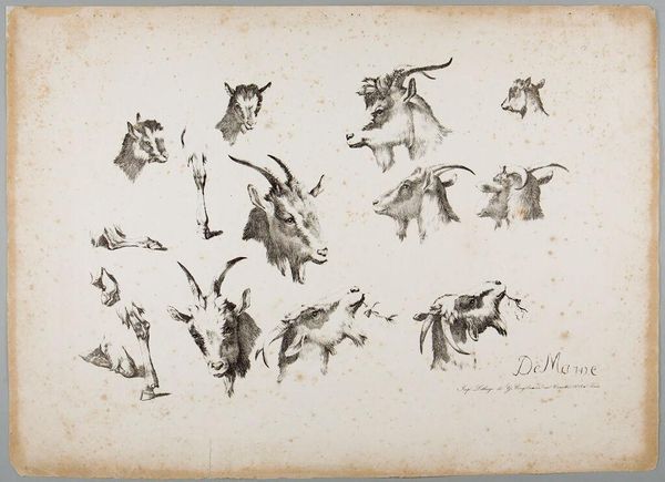 Jean Louis Demarne made this drawing titled, 'Studies van geiten', which translates to 'studies of goats', using pen and ink. Demarne was a pivotal figure in the artistic landscape of the 18th and 19th centuries, a period marked by social and political upheaval in Europe. During this time, the representation of animals, particularly livestock, was often intertwined with notions of rural life, agricultural prosperity, and national identity. Demarne's choice to focus on goats invites us to consider the symbolic significance of these creatures within the broader context of French society. Were these studies intended to celebrate the virtues of pastoral existence, or did they serve as a subtle commentary on the socio-economic realities of the time? As you gaze upon these delicate renderings, consider the complex interplay between art, nature, and society in shaping our perceptions of the animal world.