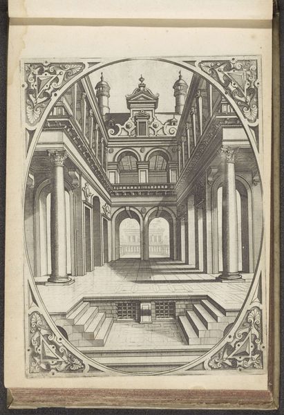 Editor: This drawing, titled "Poortgebouw met tunnelgewelf en gezicht op een stadspoort," or "Gateway with tunnel vault and a view of a city gate", by Johannes or Lucas van Doetechum, created sometime between 1560 and 1601, employs pen, ink, and engraving. I'm immediately struck by its linear precision and the depth achieved through perspective. What do you see in this piece, especially regarding its form and structure? Curator: The most compelling element, for me, resides in the meticulously rendered linear quality and deployment of perspective, which prefigures 20th-century experiments in geometric abstraction. Note how the intaglio technique, the engraving, lends itself to a stark contrast, heightening the interplay of light and shadow, a dichotomy fundamental to its structure. Does the regularity of its forms suggest anything to you? Editor: It seems to highlight an ideal of order and proportion. The repetition of the arches and columns creates a strong sense of rhythm. Is that rhythm integral to the overall aesthetic effect? Curator: Precisely. This carefully calibrated rhythm operates as a structural backbone. Look closer at how the lines delineate space; there’s a tension between the two-dimensional surface and the illusion of three-dimensionality. That tension underscores the artwork's exploration of form itself, making the representation secondary. It seems like a constructed world viewed through geometrical precision. Editor: I see what you mean. I was initially focused on the perspective creating depth, but the lines and forms create something almost abstract. I never considered that the rhythm could be such an important structuring device. Curator: Exactly! Understanding how lines function independently of representation is crucial. In this case, the lines aren't merely descriptive, but constructive, producing their own inherent beauty through pattern and proportion. Editor: Thank you! I now see how the abstract qualities of line and form elevate the engraving beyond a mere depiction of architecture. Curator: My pleasure! Recognizing these structural principles opens new avenues for understanding art across periods and styles.