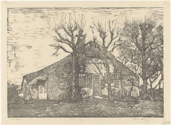 Julie de Graag crafted this evocative woodcut, titled "Boerderij," around 1919, a scene dominated by the archetypal image of a farmhouse amidst a stark landscape. The farmhouse, a symbol of shelter, family, and the cultivation of life, emerges from a lineage that stretches back to antiquity. The roof over our heads: its protective presence reverberates through history, from the humble dwellings depicted in ancient Egyptian art to the grand villas of the Roman Empire. Like the hearth, it embodies the universal human desire for a haven against the elements. The bare trees, with their stark, reaching branches, evoke the cyclical nature of life and death, mirroring motifs found in Northern Renaissance art, where barren trees symbolize mortality and the transience of earthly existence. Consider the powerful contrast here: the solid, grounded structure of the farmhouse juxtaposed with the ethereal quality of the bare trees, a potent reminder of the ever-present tension between permanence and decay. Through the collective memory, this simple image taps into our deepest fears and longings, engaging us on a primal level. This symbolic tableau continues to resurface, evolving, and adapting across different epochs.