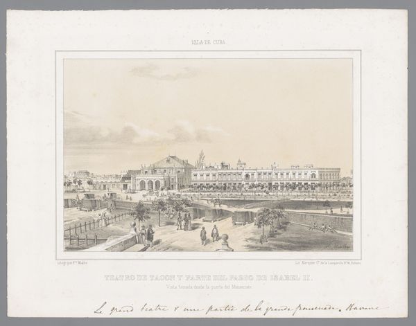 Curator: What strikes me first is the rather bleak, almost clinical quality of the light here. Editor: Well, let’s contextualize that initial impression. This is "Gezicht op het Paleis van Versailles" – or "View of the Palace of Versailles" – attributed to Charles Fichot and dated before 1841. It’s a print or drawing currently held in the Rijksmuseum. Given the Neoclassical period, one could analyze this cold light from the point of view of power structures. Curator: A print, you say? It feels so precise. Note the lines: incredibly clean, meticulously rendered, emphasizing structure above all else. It’s less an atmospheric view and more an architectural record. Editor: Absolutely. This image acts as both a visual document and a political statement, showcasing the seat of French power and its impact on social identity. Consider, too, who would have had access to such images, reinforcing class distinctions. Curator: Indeed, but the composition leads your eye—almost cruelly, I might add—across the vast courtyard, devoid of warmth or true human connection, dwarfing the figures present. There's this echoing emptiness…it’s unsettling. Editor: The emptiness you feel reflects, in some ways, the hollowness beneath the veneer of absolute power, and raises critical questions about its human cost. Fichot's representation implicitly comments on the grand narratives of authority. It does make one consider ideas of national identity through manufactured perceptions. Curator: A compelling argument, though I'm also fixated on the visual dynamics. The symmetrical façade creates this repetitive visual rhythm. How much of it then alludes to French political thought? Editor: Quite possibly. Seeing Versailles presented this way is a crucial element in understanding the development of class and power throughout France’s history. Curator: Yes, but on a visual note, there's almost no tonal variation beyond gray, which, however, lends it a specific kind of dignity. A formal, stately dignity. Editor: Agreed. And viewing the history from different critical perspectives enhances one’s understanding of this artwork. Curator: A perfect synthesis of political interpretation and formalistic technique.