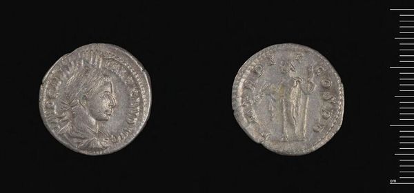 Curator: Before us is a silver denarius, minted during the reign of Septimius Severus. Editor: It's strikingly small, but the etched details manage to convey strength and even an aloofness of character. Curator: Indeed. The material reality of this coin speaks volumes about Roman imperial power. The silver would have been mined, refined, and then struck – processes involving considerable labor. And these coins facilitated commerce, military payments, and imperial propaganda. Editor: The composition is quite classical. A bust in profile, meticulously rendered, set against a circular field. It's a study in restrained elegance. Curator: These weren't just pretty objects, though. Each coin represents the extension of Roman power through the manipulation of materials and labor. Editor: I see your point, but there’s a beauty in its formal simplicity too. Curator: Absolutely, and seeing the intersection of the two enriches our understanding. Editor: Agreed. This piece offers a reminder of both the artistic skill and the economic foundations of the Roman Empire.