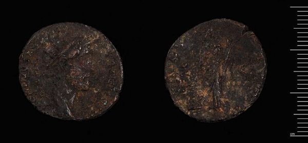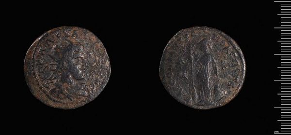 Curator: Looking at this coin, I’m immediately struck by its… weight. Not just physical, though at 3.62 grams it’s substantial, but the weight of history it carries. Editor: Indeed. This is a Coin of Tabai, likely from the time of Gallienus, a Roman emperor of the 3rd century. It’s amazing how these small objects can tell such big stories. Curator: It feels like a tiny, portable monument. Notice the portrait; you can almost feel the hubris radiating off of it, even after all this time. Though I wonder how representative such an image is. Editor: Well, portraits on coins were definitely tools of propaganda, meant to project power and legitimacy. The hole drilled through it speaks to its devaluation, however – perhaps it was once worn as jewelry. Curator: I love the idea of something so formally representative becoming repurposed, almost irreverent. It makes the past feel more tactile, more human. Editor: Absolutely. It's a potent reminder that even symbols of power are subject to the whims and needs of the people. These objects contain an almost infinite amount of voices. Curator: What a compelling thought to end with; it truly does feel like a conversation across millennia.