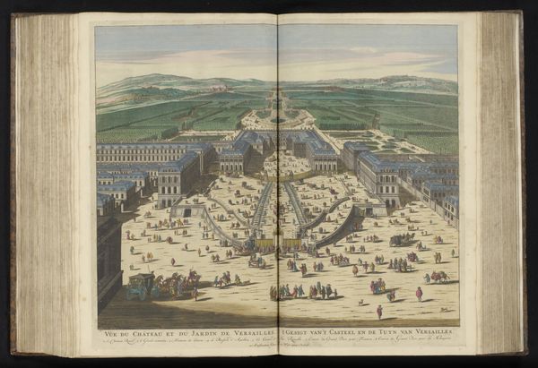 Editor: Here we have Pieter Schenk’s print, "Piazza del Popolo in Rome," dating from approximately 1675 to 1717. I'm struck by how meticulously the scene is laid out, emphasizing a grand sense of space through sharp perspective. What underlying symbolic relationships might be captured within this city view? Curator: Notice how the converging lines draw your eye toward the horizon, where Rome's skyline punctuates the sky? In that era, the city itself was a potent symbol of power, both spiritual and earthly. The architecture embodies ambition. This perspective invites us into the heart of the city, not just as observers, but as participants in its narrative. What do those twin churches signify to you in terms of mirroring or balance? Editor: I suppose they establish symmetry and reinforce that sense of balance and order. Does the presence of people also walking through and occupying the space have meaning? Curator: Absolutely. The figures populate the square. They demonstrate activity and daily life within the idealized city. Look at their attire and gestures; they tell stories of social class and the hierarchies that structured Roman society. What sort of cultural continuities do you notice within the contemporary era, reflected in such public urban spaces? Editor: I now notice these persistent themes of civic life. Public squares remain places of demonstration and community. It makes me reconsider my interpretation as not simply an image, but rather an imprint of an enduring memory. Curator: Indeed! An icon isn't merely representational; it's also a window into cultural values. Seeing these patterns helps us trace those long echoes of shared human experience.