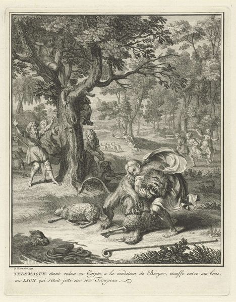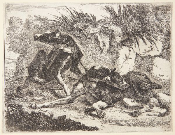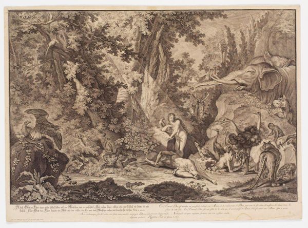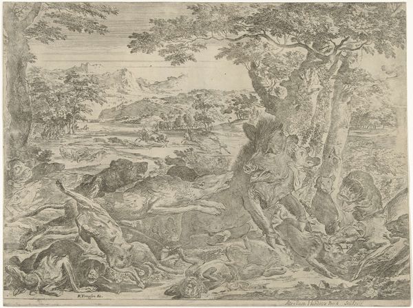 Jean-Baptiste Oudry created "Wolf Hunt" using etching techniques, though the specific date of its creation is unknown. Oudry, as a painter in the court of Louis XV, occupied a position of relative privilege, portraying the lavish lifestyles of the French aristocracy. Here, hounds aggressively encircle a wolf, biting and clawing. The hunt symbolized the nobility's power over nature and the lower classes, reinforcing a rigid social hierarchy. This artwork is a window into the cultural values of 18th-century France, where hunting was not only a sport but a performance of dominance. Oudry, as a skilled animal painter, captures the raw energy and violence of the scene. The work is not merely a depiction of a hunt but also a representation of societal structures and power dynamics. The emotional intensity of the scene leaves us to reflect on the historical roots of class divisions and the complex relationship between humans and the natural world.