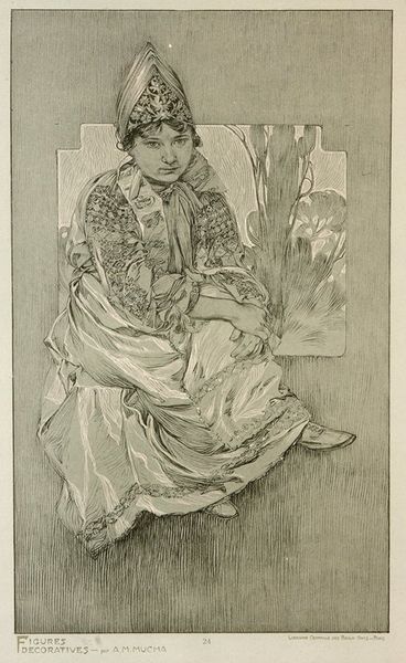 Editor: This is Jacques-Émile Blanche's pencil drawing, "Sitting Girl with Hat on Chair with Basket on Lap," likely created between 1893 and 1895. I’m struck by how quickly it seems to have been made. It's got this very light, airy quality. What captures your attention when you look at it? Curator: Ah, a glimpse into a private moment, wouldn't you say? It feels like we've caught this young lady unawares. The impressionistic touch gives her almost a dreamlike presence. Notice how Blanche captures the light on her dress and that wonderful, enormous hat—it practically radiates! I wonder, does it evoke a particular feeling in you? Editor: Definitely a sense of calm, but also a bit of… stiffness, perhaps from the way she’s posed? It’s an interesting mix. The shadows behind her make me feel like she's posed outside. Curator: Good eye. Blanche was a master of capturing social nuances. Think of this not just as a portrait, but as a record of a particular class and era. Those long white gloves, the elaborate hat... she's very buttoned-up. But then, the loose, almost hurried strokes tell a different story, a tension, if you will. Do you see how the sketch-like quality suggests a fleeting moment? Editor: Yes! Almost like a candid snapshot instead of a formal portrait. What do you make of her gaze? It is rather direct. Curator: She seems almost...aware, doesn't she? Meeting our gaze so frankly. In that era, for a woman to hold someone’s gaze was, indeed, saying something. Now I see more that stillness I sensed at the start… she and the chair seem caught between presence and fade-out. I love the ambiguity, truly. It whispers secrets to us across the ages. Editor: This has been a wonderful deep dive. It's made me look beyond just the surface of the sketch and really consider its nuances! Curator: Likewise! Each viewing unlocks more questions to ponder. The real magic of art, eh?