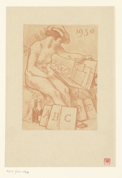 Kornél Révész made this New Year's greeting, or Nieuwjaarswens, as it's called in Dutch, sometime around 1933, using a printmaking technique that allows for these fine, delicate lines. The etching captures a nude figure blowing bubbles with "1933" playfully inscribed inside one. There’s a real sense of fragility here. See how the artist captures the curve of the figure’s back, almost as if they’re caught in a moment of exhale, of release. And then, just to the side, there's an hourglass, adding a touch of memento mori to the celebration. The texture is subtle, almost ghostly, a testament to the artist's skill in manipulating the etching plate, it’s almost as if the figure is emerging from the paper, or perhaps, dissolving back into it. Artists like Révész make me think of other printmakers like Käthe Kollwitz, both of whom are able to convey such a deep sense of emotion with just a few, careful marks. Art, at its best, is about capturing these fleeting moments and turning them into something that lasts.