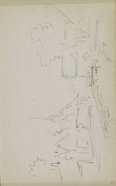 This is "Landschap met liggende ossen," or "Landscape with lying oxen," by Johannes Tavenraat, made using pen in brown ink and brush in gray and brown ink. Tavenraat lived through a period of significant social and economic change in the Netherlands. The rapid urbanization and industrialization of the 19th century led artists to look back to the rural landscapes and traditions as a source of national identity. The oxen in Tavenraat's sketch represent labor, and an agrarian lifestyle increasingly under threat during the industrial revolution. The sketch emphasizes the animal's mass and form, yet captures a gentle submissiveness which invites empathy. Tavenraat shows us the beauty and dignity of labor. The inscription on the sketch suggests this landscape was located near a brick factory, pointing to the impact of growing industry on the natural landscape. Tavenraat's work invites us to consider the relationship between humans, animals, and the changing landscape during a period of rapid modernization. It's a poignant reminder of the lives and labor that have shaped our environment.