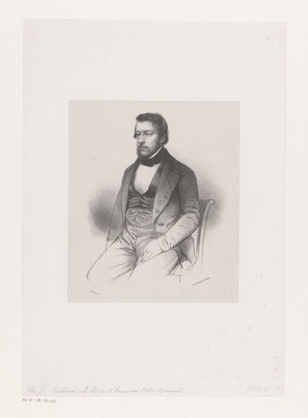 This is a lithograph of Samuel Elias Stein by Johan Hendrik Hoffmeister. The composition, primarily in shades of gray, presents a balanced yet stark visual field. The subject's figure occupies the central space, delineated with meticulous line work and shading. This creates a three-dimensional effect against a flat, neutral background. The gaze of the subject directs our attention, while the fall of light accentuates the contours of his face and clothing, inviting an emotional response anchored in seriousness and introspection. In this portrait, Hoffmeister engages with semiotic systems of representation. Each element—the subject's attire, his posture, and even the subtle nuances of expression—functions as a sign. The artist invites us to decode the values and identities associated with the sitter. The delicate balance of light and shadow serves not just an aesthetic purpose, but also contributes to a broader dialogue about representation, identity, and the gaze. This exemplifies how formal qualities in art extend into wider cultural and philosophical conversations. Art is ever-evolving; it is up to us to continually interpret and reinterpret its meanings.