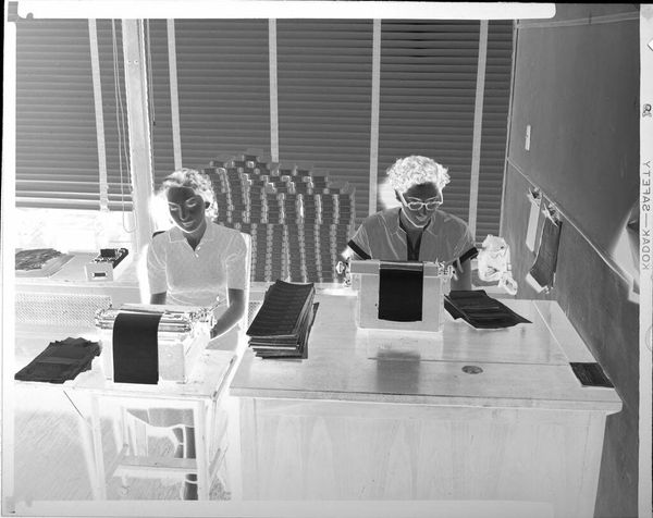 Curator: This is an untitled photographic negative by John Howell, depicting three women and a baby. It's quite small, only about 10 by 13 centimeters. Editor: The stark contrast immediately makes it feel somber, despite the domestic setting. The doll is unsettling. Curator: Considering it's a negative, the tonal values are reversed, which does impact the emotional reading. I'm curious about the material and labor involved in producing photographs during this period and the cultural role photography played in shaping domestic memory. Editor: Precisely. Photography became increasingly accessible, democratizing portraiture, but also influencing social perceptions of family and gender roles. Curator: Indeed. It makes you wonder about the photographer's relationship to the subjects, and how the image itself circulates and is consumed. Editor: Right, a fascinating example of how a seemingly simple photograph opens onto larger questions about history, memory, and representation. Curator: A powerful demonstration of the interplay of technique and social context. Editor: Yes, and the many ways art can challenge our assumptions about everyday life.