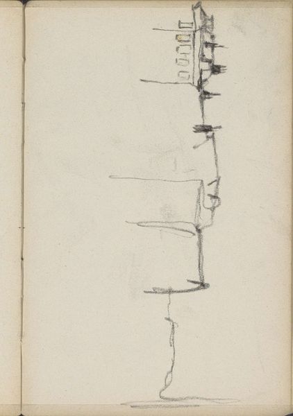 Curator: Here at the Rijksmuseum, we have "Landscape with Two Windmills," a pencil drawing on paper by George Hendrik Breitner, created between 1880 and 1882. What's your initial reaction to this work? Editor: It strikes me as incredibly raw, almost urgent. The lines are so sparse, yet they evoke a surprising sense of space. The lack of detail makes it feel ephemeral, like a fleeting memory of a landscape rather than a concrete depiction. Curator: Breitner’s artistic trajectory reveals his connection to the sociopolitical changes that defined late 19th-century Netherlands. As industrialization impacted marginalized communities and workers in Dutch cities, did Breitner confront these stark inequalities through the symbolism present in works such as this one? How are windmills connected to the themes of labor and societal class? Editor: I can see how that viewpoint might connect, but consider the composition—the strategic arrangement of lines directs the eye. Notice how the windmills aren't centered, yet they create balance. Semiotically, the windmills can suggest an interplay between structure and spontaneity. Breitner creates visual tension here, a hallmark of the era. It would appear he is searching for meaning and representation. Curator: Perhaps that searching translates to his subjects’ alienation during this historical moment. Beyond just the formal aspects, Breitner captured the visual landscape as one being reshaped by socioeconomic forces—and, I might add, patriarchal structures that impacted everything from agricultural to societal norms. It underscores a sense of transition but also potential dispossession among ordinary individuals. Editor: The lack of overt details lets our own interpretation shape the experience. Whether it underscores historical disruption or Breitner’s artistic journey into abstraction, the beauty resides in the sparseness. Curator: The very act of observing art, like this one, fosters consciousness—about history and even ourselves. Thanks for sharing this moment with me and encouraging us to see its layers. Editor: Indeed. It is a reminder that art, at its core, is a dialogue—with the artist, ourselves, and perhaps history too.