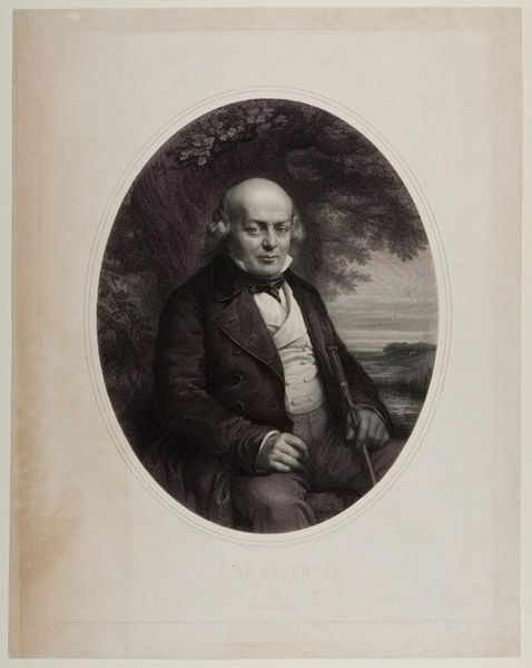 Curator: This photographic print, simply titled "Untitled (bust length portrait of unidentified balding man with long side whiskers)," is attributed to an artist with the surname Charles. Editor: He looks rather stern, doesn't he? There's a formality in his pose, a weightiness suggested by the muted tones. Curator: Indeed. The composition is quite conventional for its time—a bust-length portrait, the sitter centrally placed. I'm intrigued by the artist's use of light and shadow to define the planes of his face. Editor: And those whiskers! They're such a strong visual signifier of a certain era, conjuring images of Victorian society and its emphasis on respectability and status. Curator: Precisely. Though "Untitled," the portrait speaks volumes about the conventions of representation. The textures, tones, and balance create an echo of a bygone time. Editor: I agree. It is a window into the past, isn't it? Curator: An intriguing glimpse, to be sure.