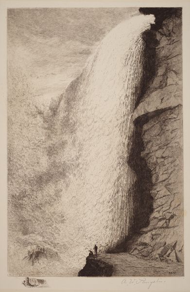 Editor: Here we have an etching, "Illustration til "Makreldorg"" made sometime between 1829 and 1899 by H.P. Hansen. It's mostly ink on paper, depicting a rocky seascape. The rendering of the rock texture is quite intriguing. What jumps out at you about this work? Curator: Considering the context of its production, what I see most clearly are the processes involved. The etching, the printing, the likely reproductive purpose... These all point to a material reality often obscured by talk of artistic "genius." Look closely at the lines, the varying densities achieved through the etching process. Editor: Yes, the details achieved with etching and engraving is quite remarkable, creating the details of the rocks. What do you make of the incomplete image on the paper? Curator: That’s interesting, isn’t it? It speaks to the industrial aspect of art-making at the time. These illustrations weren't precious objects, but products of a workshop intended for mass consumption. Consider how this particular print, this "flaw," allows us to see the physical, labored process of image production. It is no longer a window on the landscape, but an object whose construction is evident. Editor: I never really considered that these prints might have had more utilitarian goals than high art. How does its origin as an illustration impact how we understand it? Curator: Precisely! Understanding this work as an illustration changes our relationship to it. Instead of purely aesthetic appreciation, we're drawn to consider its original function, its relationship to the text it accompanied, the printing and publishing industry that supported its creation, and ultimately its intended audience and the economic systems at play. It's less about what the landscape depicts and more about *how* that depiction came into being and what purpose it served. Editor: That's a very different approach from what I would have expected! It really makes you consider all of the labor and decisions that went into its existence. Curator: Absolutely, and that, for me, is where the true value lies. Seeing art as a product of material conditions, of labor and production.