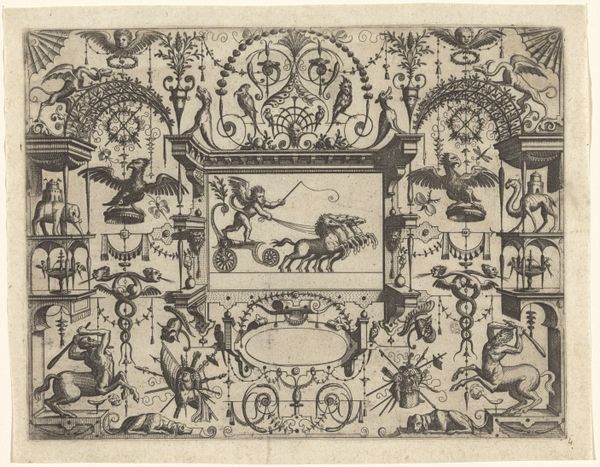Etienne Delaune created this print of ‘Essau Selling his Birthright’ in the 16th century, a time of significant religious and social upheaval in Europe. Delaune, working amid the Reformation, presents a scene rife with questions about inheritance, value, and identity. At its core, this image tells a biblical story of two brothers, Essau and Jacob, and their struggle over birthright. Essau, the elder, sells his birthright to Jacob for a mere bowl of stew, a transaction that speaks volumes about immediate versus deferred gratification. Notice how Delaune uses the visual language of the time to depict the figures and the opulence that surrounds them. How might this affect our view of the decisions made? Consider the social and religious implications of this choice during the Reformation. What does it mean to relinquish one's inheritance, particularly in a society where lineage and status are paramount? This image invites us to reflect on our own values and the choices we make in the face of immediate needs versus long-term legacy. The scene reflects not only personal desires but also broader questions of faith, destiny, and the shifting sands of social order.