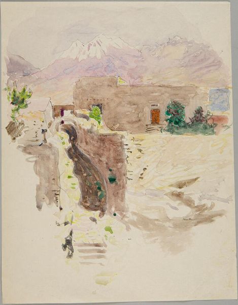 Curator: George Washington Lambert painted this landscape, entitled "Tiberias," in 1919 using oil paint in a plein-air style. Editor: My initial reaction is quiet. It’s a bit dusty, faded somehow, like looking at an old photograph rescued from an attic. It feels distant, even though the brushstrokes have an immediacy. Curator: It’s intriguing you use the word distant, because it’s relevant in several ways. Lambert, an Australian artist, was working as an official war artist, and this work reflects Britain's Palestine campaign during World War I. The painting's style situates it in dialogue with orientalist tropes, despite its modern impressionist treatment. What we must consider is the representation of this city and landscape in the context of colonial power dynamics. Editor: That definitely shifts things. Suddenly that quiet distance feels…loaded. Knowing it was painted by a war artist gives it a new tension. It is like he’s both capturing the light on the buildings and surveying the scene, almost claiming it visually. The colours, pale blues and browns, add to that slightly melancholic feel – as though he's depicting something already lost or transformed by conflict. Curator: Exactly. Lambert’s style can be understood as participating in the visual rhetoric that positions Western artists as interpreters, and almost possessors, of the East. Even his choice of plein-air—painting outside, en plain air—adds to this understanding. By placing himself directly in the landscape, Lambert is reinforcing this relationship of observer and observed. He’s a Westerner literally *in* the landscape. Editor: It is an interesting tension isn't it, the act of creation, the painterly moment, colliding with historical complexities, the impact of imperialism. Makes you think about whose gaze, whose story, is truly being told, or even permitted. It almost asks if beauty and privilege are destined to walk hand in hand. Curator: Precisely, and grappling with those questions enriches our understanding, particularly considering Lambert's positionality and the lasting impacts of this history on contemporary power structures and cultural representations. Editor: A landscape painting that asks questions, challenges assumptions – who would have thought? I shall never look at a "view" quite the same way again.