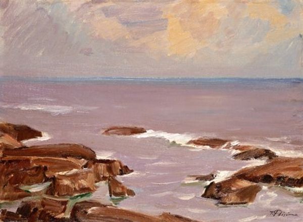 Charles Cottet painted this Sea Landscape in Brittany in the late 19th or early 20th century, capturing the rugged coastline of northern France. This work speaks to the artistic movements of the time and the changing relationship between art, society, and national identity. Cottet's somber palette and dramatic composition reflect the growing interest in regionalism and the lives of rural communities. Brittany, with its unique cultural traditions and picturesque scenery, became a popular subject for artists seeking an alternative to urban life. The painting’s focus on the natural landscape can also be seen as a response to the rapid industrialization and modernization of France. Artists looked to nature as a source of authenticity and spiritual renewal, while the art market and museum system created a space for these explorations. To fully understand Cottet's work, consider the rise of regionalist movements in France and the role of art institutions in shaping cultural narratives. Resources from local historical societies, museum archives, and academic studies of French art history can shed light on the social context and artistic significance of this landscape.