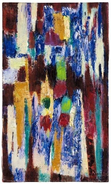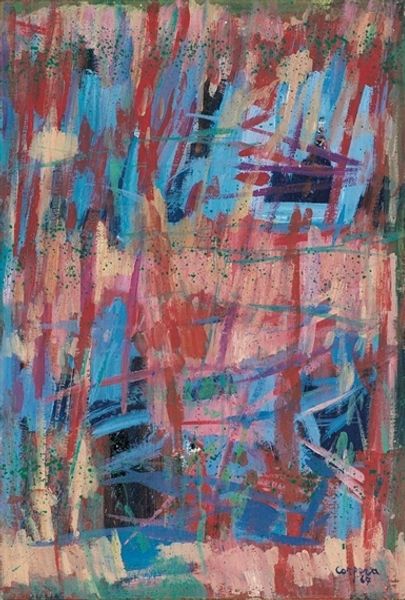 Andre Lanskoy made "La Naissance Attendue" at some point in his career using oil paint. Looking at this painting, it feels like Lanskoy dove headfirst into a sea of colors. The paint is applied with a kind of joyful abandon. Notice how the blues and greens wrestle with the reds and yellows, creating a vibrant, almost chaotic harmony. The texture isn't smooth or blended; you can see the individual strokes, the energy of the hand that made them. There's this one spot near the center, a little burst of pink and white, that feels like the heart of the whole thing, radiating outwards. Lanskoy reminds me a bit of Kandinsky, but with a warmer palette. Both artists share this interest in art as an ongoing conversation and exchange of ideas across time. Ultimately, "La Naissance Attendue" invites us to embrace ambiguity and to find our own meanings within its colorful depths.
