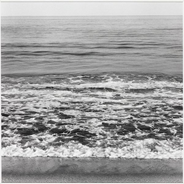 Editor: Lawrence McFarland's black and white photograph, "Long Island Landscape (beach)," captures an expansive scene. The texture of the water is so detailed, almost overwhelming. What do you see in the composition of this piece? Curator: The stark contrast between the dark foreground and the subtly gradated sky certainly structures the viewing experience. Observe how the horizon line divides the image, creating a tension between the tactile and the ethereal. Does that division impact your understanding? Editor: I hadn't considered it that way, but now I see how the textures compete with the sky. It's almost a fight between realism and something more abstract. Curator: Precisely. It is this interplay of elements that defines the image. Editor: I will definitely look at landscapes differently now. Thanks. Curator: My pleasure. Focusing on form helps us understand the artist’s choices and their impact on us.