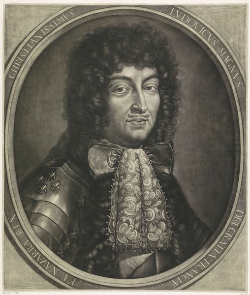 Editor: This is John Riley's "Charles II," an oil painting from the Baroque period. He looks kind of...melancholy? Considering he's a king, I expected more pomp. What do you make of him? Curator: Well, it’s certainly not the sunniest royal portrait I’ve seen. And that’s saying something! Riley’s focus isn’t really on glorifying Charles with traditional symbols of power, is it? Notice how the dark colors kind of swallow him up. The armor’s there, the lacy frill…but it feels more like a costume. He almost seems weary. Editor: Weary, yes! Exactly! But what's with all the black? Was that just the fashion? Curator: Absolutely. Big hair was *the* thing back then and dark hues helped it to pop, I suspect. Beyond just the trends, there’s also something really interesting in the tension between the public image a king had to project and the human being underneath all that. Editor: So, the painting’s not just *of* a king, but about the weight of being one? Curator: Precisely! The Baroque period did like its drama. It’s not a purely objective record; it's layered. Riley captures a kind of internal state alongside the external presentation, if you will. A fleeting sense of something. It seems as though there might be vulnerability? Editor: I never would've noticed all of that on my own. It's really about the performance, I think! Curator: Indeed. And next time I complain about having to dress up, I'll think about good old Charles!