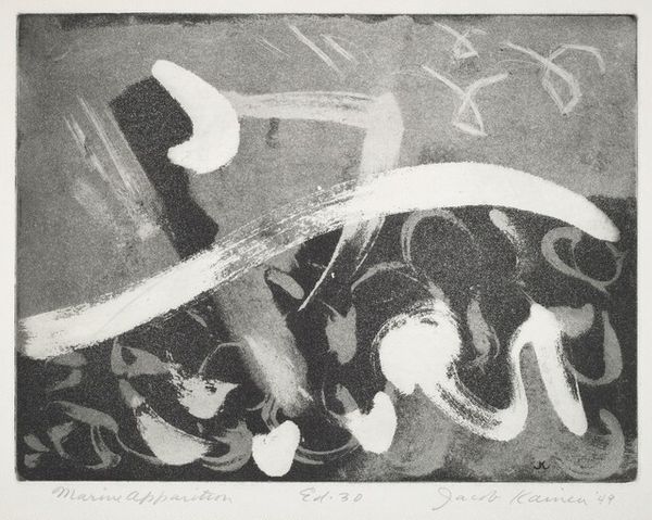 Paul Klee made this etching, Never Ending, in 1930. It shows how industrial printmaking processes can be used to create highly imaginative results. This work was made by incising lines into a metal plate, inking the surface, and then running it through a press. The labor-intensive process of etching, requiring careful control of acid and timing, stands in contrast to Klee's whimsical, almost childlike imagery. Note how the grainy aquatint texture adds depth and atmosphere, softening the hard lines of the etched figures, which are reminiscent of sea creatures or playful organisms. Klee's choice of printmaking is also significant, reflecting a desire to make his art accessible to a wider audience, in line with the socialist ideals prevalent in the Bauhaus movement, where he taught. This etching represents an intriguing intersection of craft, design, and fine art.