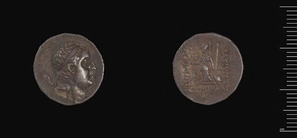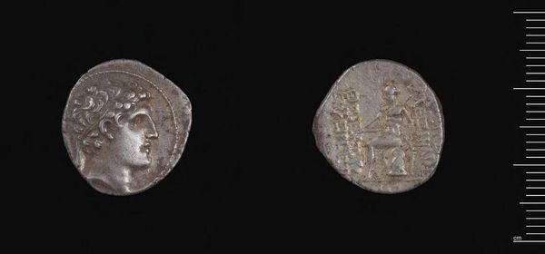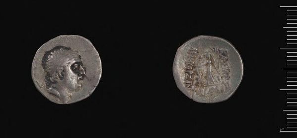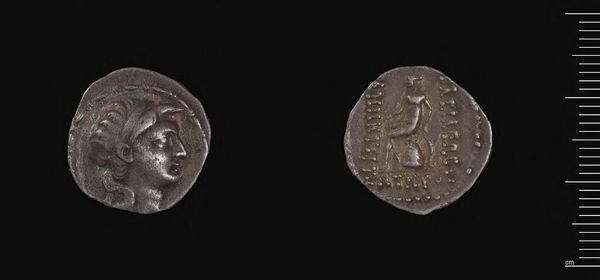 Curator: Here we have a Drachm of Demetrios I, attributed to Demetrios I of Syria. Its composition seems to be of careful metallic craftsmanship. Editor: It's fascinating how such a small object can speak volumes about power and representation, isn't it? Curator: Absolutely. The material itself, likely silver, suggests a certain economic stability and access to resources. What about the minting process? The labor involved? Editor: Indeed, examining labor helps us understand the social hierarchies within the Seleucid Empire, and how the very image of Demetrios served as political propaganda. Curator: So, from the specific gravity to the iconography, both reveal much about the society that produced it. Editor: Precisely. Objects like these offer valuable insights into the interplay between power, identity, and material culture.