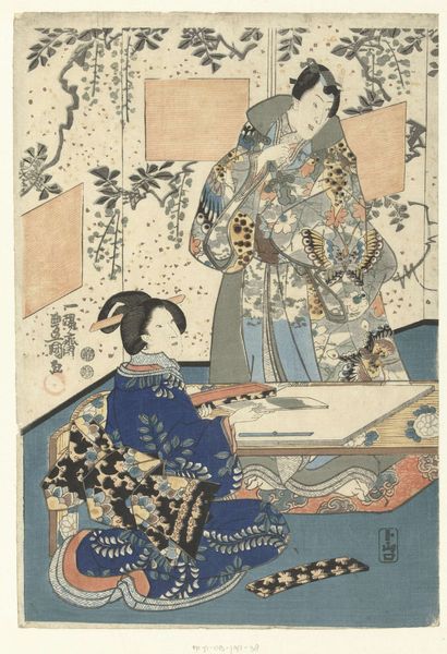 This vivid print, "Visual Parody of the Tale of Shiranui," was created by Utagawa Yoshitaki in Japan. It’s a woodblock print, meaning that each color you see was carefully carved into a separate block of wood, inked, and then pressed onto paper. Consider the labor involved, cutting away at the wood to create these intricate designs. The distinct texture and feel of the print come directly from this process. Look closely, and you can see the subtle variations in the ink, and the way the paper absorbs the color. Woodblock printing was a popular medium during this period, allowing for the mass production of images and the dissemination of stories and cultural references, in this case a ‘visual parody.’ By understanding the techniques of production, and the distribution of the print through commercial channels, we gain insight into the wider social and cultural context of the time. It invites us to look beyond the surface of the image and consider the hands, tools, and traditions that brought it into being.