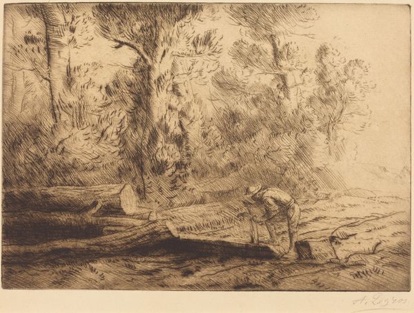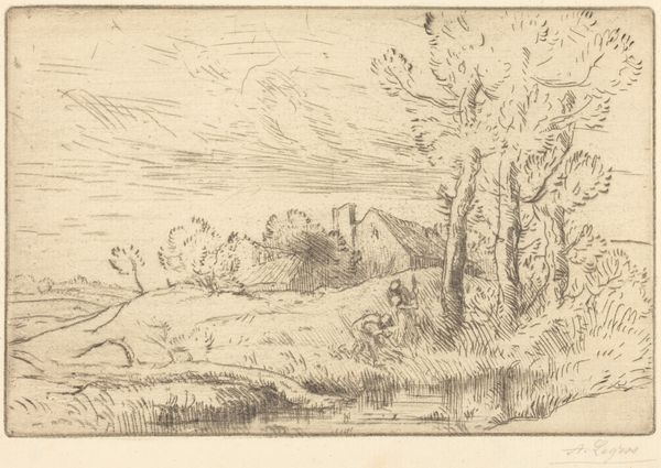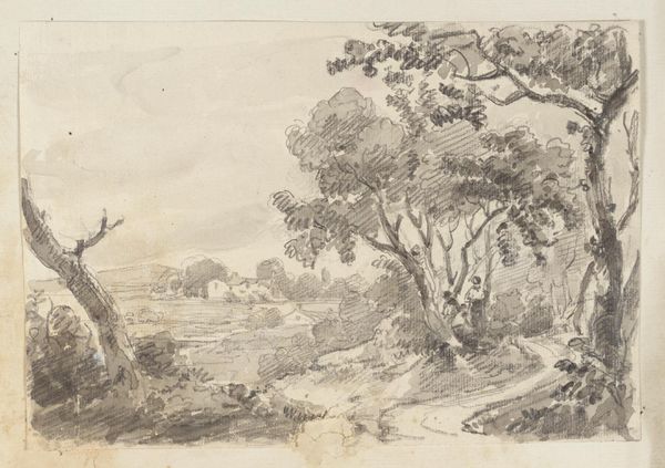 Curator: Looking at this delicate drawing, seemingly from around 1812, made by J.M.W. Turner, titled "Winchelsea, Sussex," I am immediately struck by the composition, with that dominating round tower. It creates a certain mood. What do you feel looking at it? Editor: An overwhelming sense of stillness, almost melancholic. The monochrome palette amplifies that, like a faded memory or an unfinished story. It speaks of vulnerability. Curator: Exactly. This work, utilizing etching and ink on paper, exemplifies the Romantic period's fascination with ruins. Winchelsea itself had a history, heavily impacted by the tides, political unrest, and shifting trade routes; the visual manifestation of that historical layering makes itself evident here. Editor: How do you think socio-political instability or external cultural movements would affect Turner's approach to the tower in the piece? Curator: Turner’s strategic rendering offers valuable insights. He highlights the tower not as a site of power, but instead, a picturesque reminder of the ebb and flow of authority, in a culture reckoning with imperialism and industrial progress. His representation provides social commentary and is indicative of a shifting cultural lens. The ordinary inhabitants placed within its environs seem disconnected and perhaps serve to contextualize what happens next, once they inhabit it fully. Editor: That’s a keen observation about inhabitants. What might happen next? Perhaps he uses them to draw lines about power relations within his cultural environment? Curator: It’s a possibility. Also consider the materiality. Ink and etching facilitate a high contrast, further highlighting light and shadow, underscoring this push and pull between history and potential. I see the line work creating an environment rife with symbolic value, too. Editor: Indeed. Thinking about the audience engaging with Turner's "Winchelsea, Sussex", this piece prompts contemplation of our relationships with landscape and heritage. It speaks to themes of longing, and ultimately, resilience. It transcends its own time. Curator: For me, that small human group at the lower level provides a grounding that emphasizes its lasting effect across gender and power constructs. It provides not only that individual perspective but suggests a more powerful shared understanding of Winchelsea, Sussex as the location shifts towards a more equitable common.