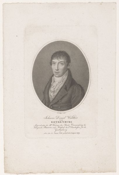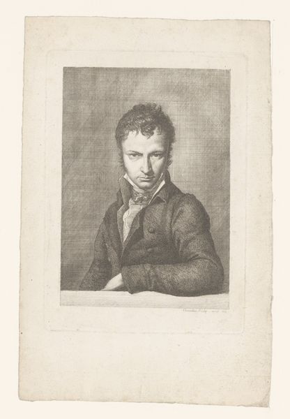 Editor: Here we have Friedrich Wilhelm Bollinger's "Portret van Gerhard von Scharnhorst," made sometime between 1813 and 1825. It's an engraving and pencil drawing that captures the general in a very formal pose. What do you see in this piece? Curator: This portrait is very much a product of its time. Notice how the Neoclassical style, popular in the early 19th century, influences the artist's approach. It isn't just about likeness; it's about presenting Scharnhorst as a figure worthy of historical importance. How does the presence of military regalia contribute to that sense of authority? Editor: Well, the decorations on his jacket, especially that prominent cross, certainly add to the impression of importance. They visually speak to his achievements and standing within the military. Curator: Exactly. This image participates in the construction of Scharnhorst as a national hero, essential after the Napoleonic Wars. The proliferation of such images served a purpose: solidifying a sense of shared identity and national pride within the Prussian state. Considering the setting within a museum, how do you think this role might be preserved, challenged, or perhaps altered for modern audiences? Editor: It's interesting to think about. Seeing it here, out of its original context, maybe we focus more on the artistic style rather than the specific political message it carried at the time. The museum setting reframes it as a historical artifact, and not necessarily as active propaganda. Curator: Precisely. The institutional framing shifts the work's role. What began as a tool for shaping public perception becomes an object of study, inviting analysis of its original intent and its evolving significance. I think that's a crucial part of how we understand art’s role within the museum setting. Editor: This portrait really shows how art is not just aesthetic, but deeply connected to politics and its cultural environment. Thanks!