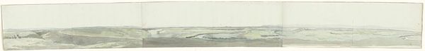 Editor: So, this panoramic drawing is "Panorama met Trapani en modern aquaduct gezien vanaf voet van berg Eryx" by Louis Ducros, created in 1778. It's rendered in pencil, almost like a washed sketch. It really gives you a sense of the wide, open landscape, but with a restrained, almost academic feel. What do you see in this piece? Curator: The vista offers a glimpse of 18th-century Sicily, not merely as a place, but as an idea—a layering of history, power, and aspiration. Note the prominence given to the aqueduct. Does it strike you as simply infrastructure, or could it be something more? Editor: I guess I hadn’t considered the aqueduct beyond its function, but framing it as part of the “idea” of Sicily is interesting. Curator: The aqueduct, a modern marvel in its time, would have served as a powerful symbol. In your mind, what did aqueducts represent in the visual language of the era? Editor: Progress, civilization… control over nature, maybe? I guess including it suggests a narrative about taming the landscape. Curator: Precisely! Ducros isn't just capturing a scene; he's composing an image imbued with the aspirations of a society. Consider also the high vantage point – the mountain representing historical precedence as contrasted with the advancements of Trapani itself. How might this contribute to our understanding of Neoclassicism in art? Editor: It shifts my perspective of Neoclassicism. I always think of grand history paintings, but this is… quieter. More focused on the potential of progress within a landscape. I'm starting to appreciate that choice of material - humble pencil to depict something so grand. Curator: The quietude allows deeper reflection, a consideration of what lasting advancement truly means, wouldn't you agree? The symbols speak quietly but purposefully. It asks what are we building that matters and will endure? Editor: Definitely something to think about as we move through the gallery today! Thanks.