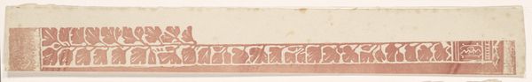 This 'Ornament met bladeren' was made by Bernard Willem Wierink, but when is anyone’s guess. And how he made it is interesting because it looks like it could be a woodcut, or a linocut, or even some kind of monoprint. The colour is so specific, that earthy red, it's almost like the ground itself. It's laid on the paper quite evenly, except for that top band, which has this beautiful torn edge, like it's been ripped from the earth. I mean, you can almost smell the soil! The interesting thing about prints is how each one is an original, even within an edition. There is a beautiful cadence in the rhythm of the ornament, but equally, the individuality of each leaf is obvious. It reminds me of other artists, like Walter Crane, or William Morris, and the way they thought about design in a social way. Like, how can we bring beauty to everyone?