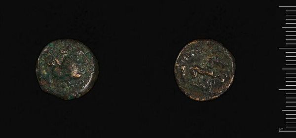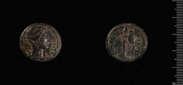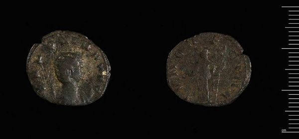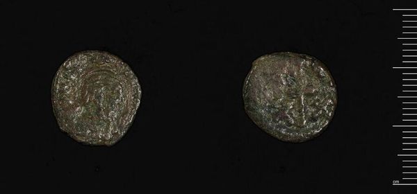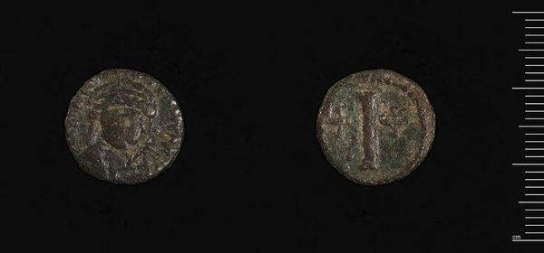 Curator: This coin, bearing the likeness of Justin II, whispers tales of power and trade from its place in the Harvard Art Museums. Editor: It's remarkable how such a small object could signify so much. I immediately think of its tangible presence and the process by which it came into being. Curator: Indeed, coins like this served as powerful propaganda tools. They broadcast the emperor's image and authority throughout the Byzantine Empire. Think about the implications for visual literacy and power structures. Editor: And how the base materials--the bronze alloy and the labor required to mine, smelt, and strike the coin--speak volumes about the economic and social structures of the time. This isn't just about an image; it's about production. Curator: Absolutely. The iconography and distribution of this coin reinforced a specific political narrative for a wide audience. Editor: Examining it through this lens, we see beyond the face of the emperor, and grasp the material realities that upheld his reign. A potent intersection of image, object, and labor.