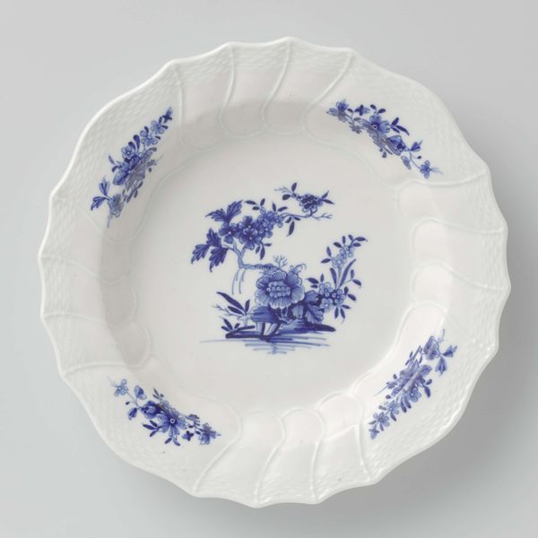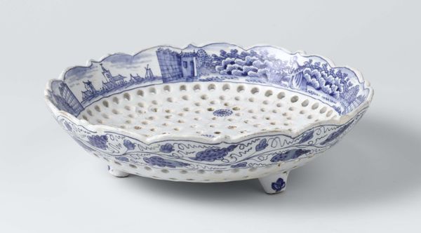 Editor: Here we have a lovely piece, a Delftware Bowl from around 1675 to 1700, a delicate object rendered in earthenware with blue decorative patterns. I find it charmingly domestic and inviting. What can you tell us about its historical significance? Curator: Well, it reflects the growing influence of Dutch Delftware, particularly its appropriation of Chinese porcelain motifs and forms. Consider the period—the Dutch East India Company held a virtual monopoly on trade with the East. These Delftware pieces weren't just decorative; they were potent symbols of status, international trade, and the Dutch Republic’s burgeoning global power. Do you see any specific details reminiscent of that Eastern influence? Editor: Now that you mention it, those floral motifs do feel reminiscent of Chinese porcelain styles. So, owning a piece like this wasn’t merely about aesthetics? Curator: Not at all! Owning Delftware placed one within a specific socio-economic strata. Remember, real Chinese porcelain was incredibly expensive. Delftware offered an accessible, yet aspirational, alternative. Furthermore, the display of such items signaled a household’s engagement with a wider, interconnected world, reflecting the public image the Dutch Republic wished to project: one of commercial prowess and cultural sophistication. Were these pieces usually displayed prominently? Editor: It makes sense that Delftware played a bigger role in expressing public image. Knowing the bowl was designed to be placed on full display gives it greater significance. I am more attuned to how art objects play within historical power dynamics. Curator: Exactly. It also underscores the complexities inherent in cultural exchange and the creation of national identities through material culture.