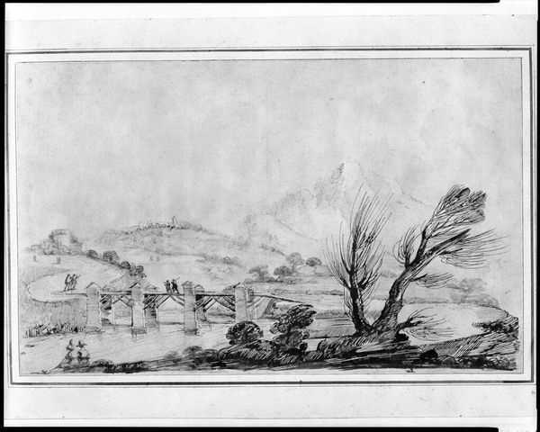 Curator: Utagawa Hiroshige, who lived from 1797 to 1858, captured this tranquil scene of Gyotoku Saltflats. Look closely at the delicate lines on paper. Editor: It's so still, isn't it? Almost melancholic, with that distant mountain and the suggestion of figures moving across the flats. Curator: These salt flats were not merely landscapes; they represented a crucial aspect of Edo-period economy and labor. Hiroshige often depicted ordinary life, elevating it. Editor: I love how the horizon line just melts into the sky. It's like a whispered memory of a place. Makes you wonder about the lives of those workers, doesn't it? Curator: Exactly. Hiroshige's work prompts us to consider the intersection of environment, labor, and the cultural value placed on natural resources. Editor: It makes me feel strangely connected to people who lived centuries ago, to their work and the landscape that shaped them. Curator: A poignant reflection, indeed. This piece challenges us to consider our own relationship with the land and its resources.
