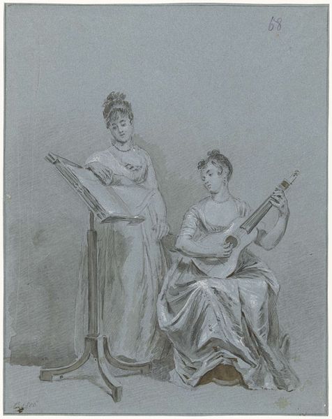 Robert Smirke made this watercolor drawing, titled "She Never Told Her Love, But Sat Like Patience on a Monument," during an era in England when art was increasingly shaped by institutions like the Royal Academy, where Smirke himself was a professor. The image, likely inspired by Shakespeare, presents a scene of unspoken emotion. The woman’s stillness contrasts with the man’s animated gestures, creating a charged, yet silent, dialogue. Above them, a Cupid statue, a classical reference, overlooks the scene. Smirke’s work reflects the period's interest in both classical ideals and the exploration of human psychology. To fully appreciate this work, we might delve into the literature and theatre of the time, examining how themes of love and stoicism were represented. The institutions that promoted and displayed art like this can give us more insight into the role that art played in shaping social values.