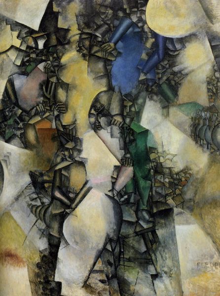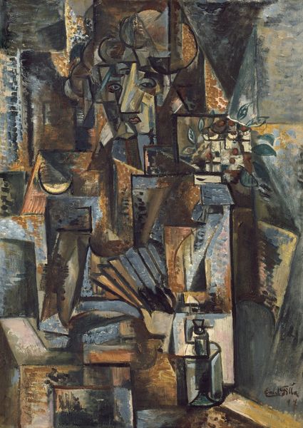 Emil Filla made this painting, Diváci, with what looks like oil on canvas, though who knows when exactly. I love how the canvas here is a jumble of geometric shapes in neutral colours – creams, browns, and beiges that create fractured faces, like a cubist collage with a muted palette. The paint application looks quite flat, almost dry, which gives it a strange, ethereal quality. There are no clues about the artist's process, and I don't know if I could guess what brushes or tools they used. Take a look at the way Filla has rendered the eye, and the suggestion of a pipe between the two central heads; these give the piece a strange intensity that resonates beyond its formal qualities. It makes me think of Braque, who was playing with similar deconstructed forms and limited palettes around the same time – art is always an ongoing conversation, isn't it? I love the idea that different artists and eras influence each other in unexpected ways.