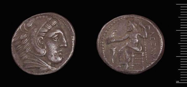 Curator: Here we have an Antoninianus of Philip the Arab, a Roman emperor from the 3rd century. The coin, currently held at the Harvard Art Museums, gives us a glimpse into the visual language of imperial power. Editor: It's amazing to consider what this little coin has witnessed. The muted silver, though, it feels melancholic...almost as if the lion has seen better days. Curator: The lion, likely symbolizing Roman power, speaks to the emperor’s ambition to project strength and legitimacy through universally understood symbols. Editor: Funny how a symbol of power feels so fragile now, worn down by time, a reminder of how empires crumble and turn to dust. Curator: Indeed, symbols evolve, their meanings shift. It prompts a reflection on the ephemeral nature of power and legacy. Editor: Ultimately, it becomes a tiny, tangible poem about history's ironies, doesn’t it?